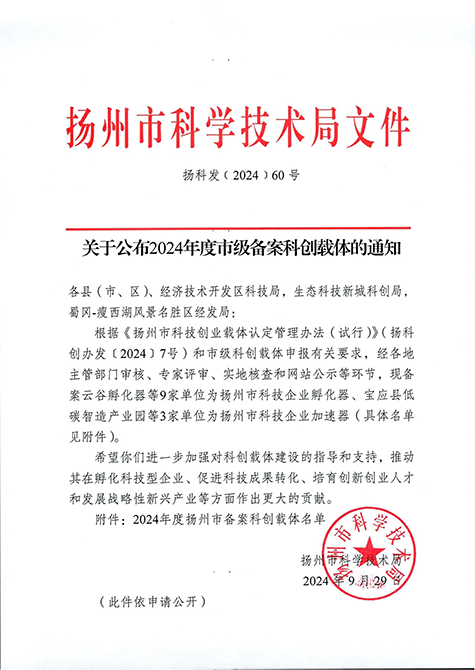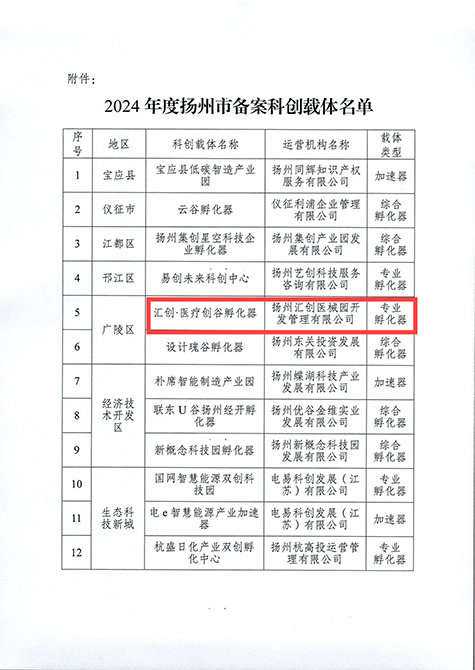集团旗下汇创·医疗创谷产业园成功获批扬州市科技企业孵化器 |